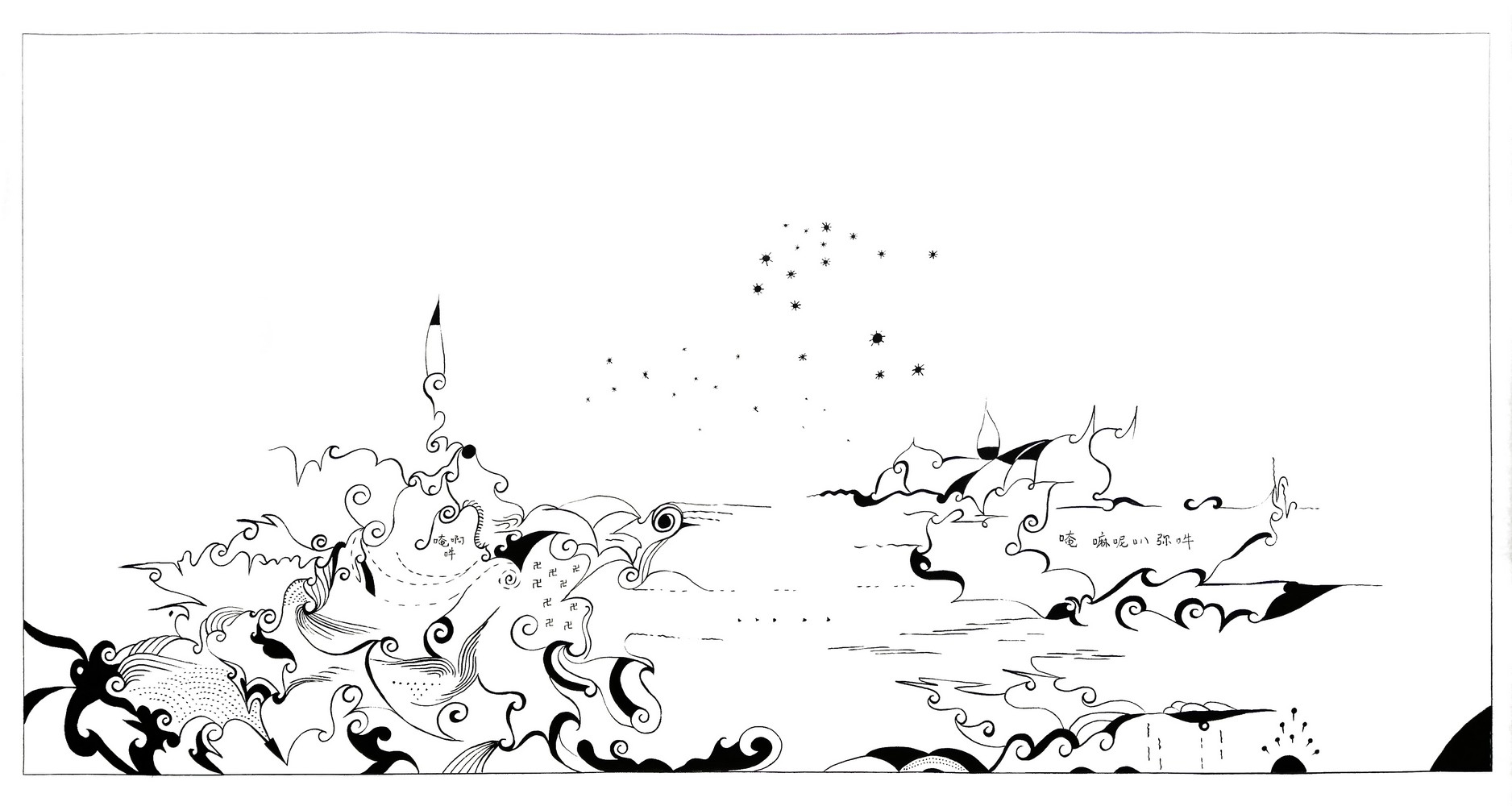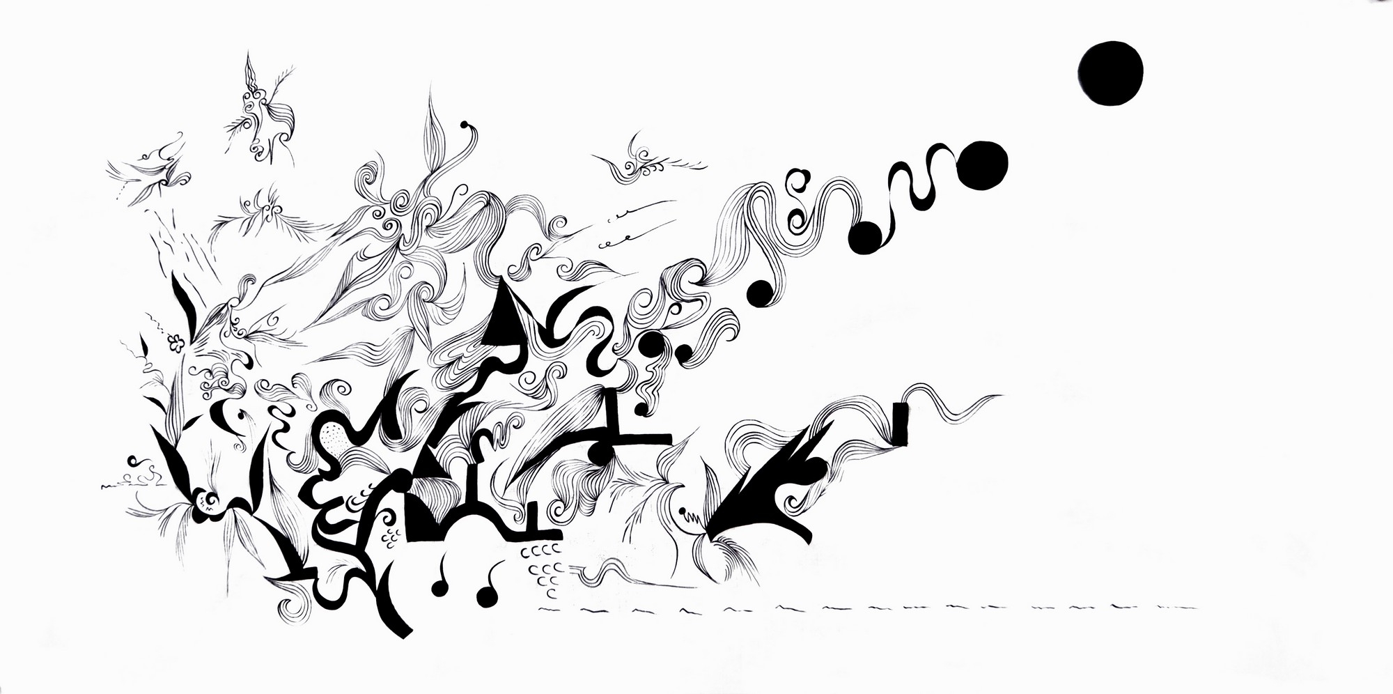 • 白底黑墨