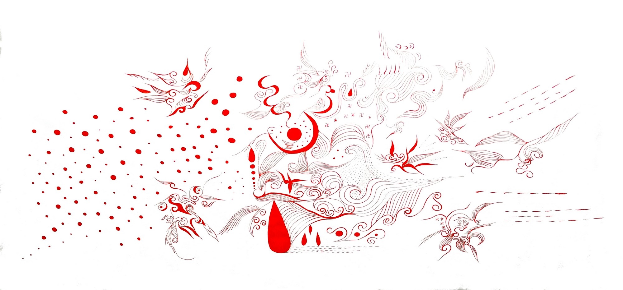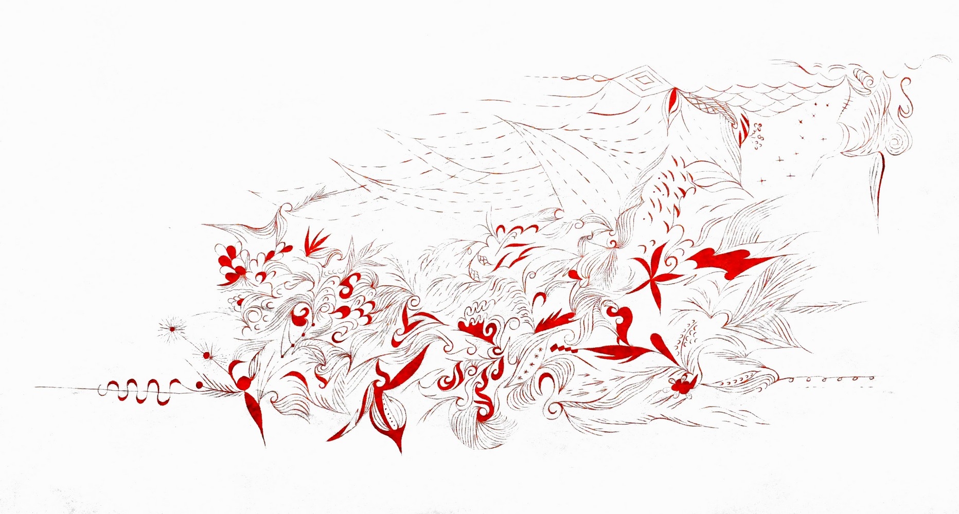 • 白底红墨