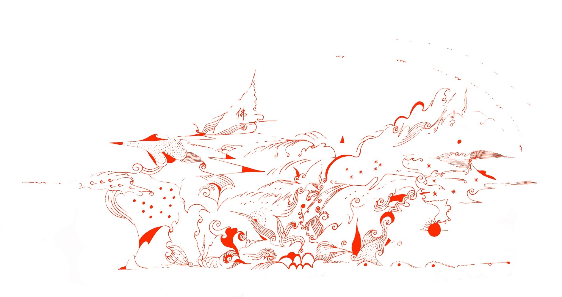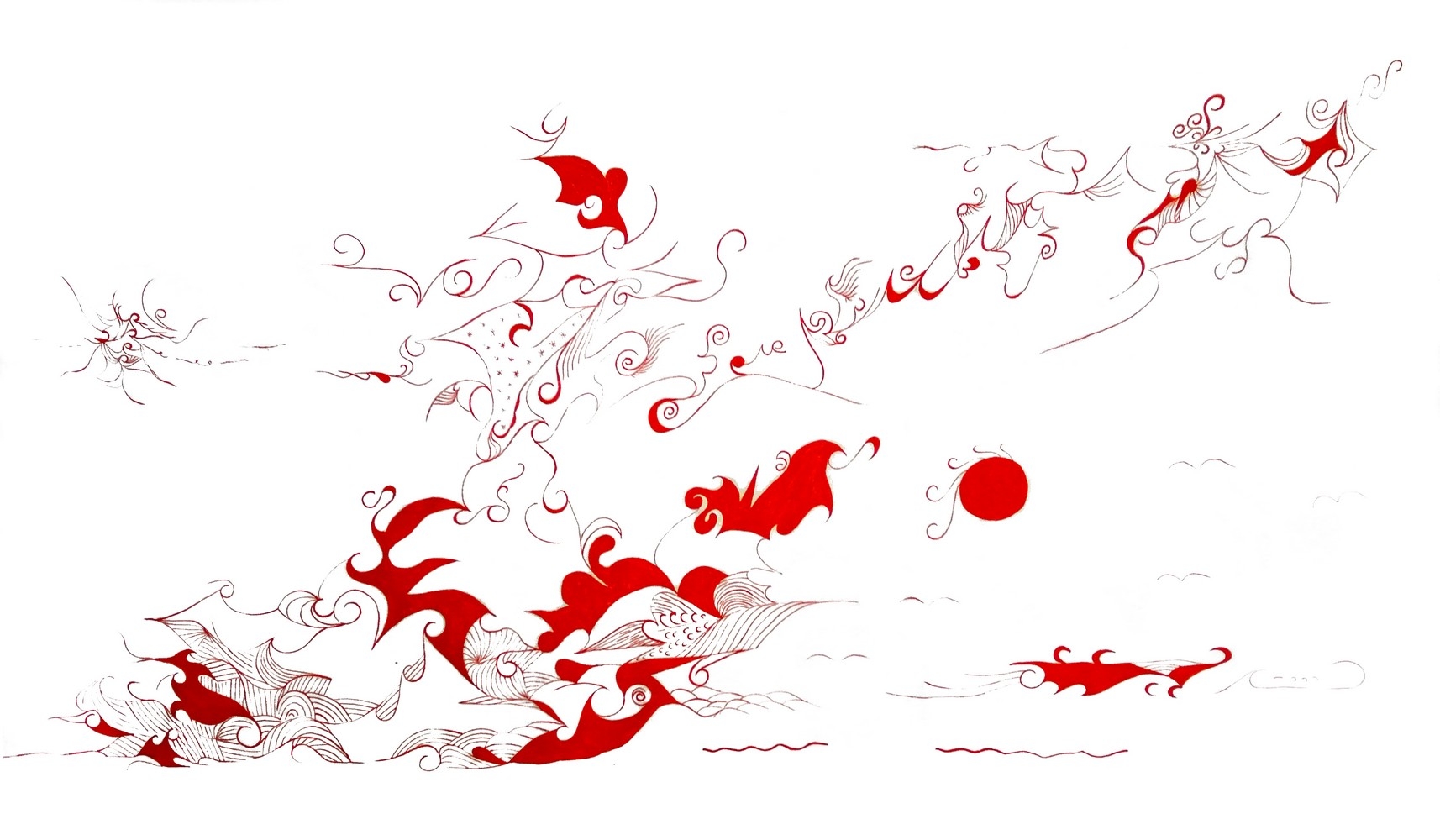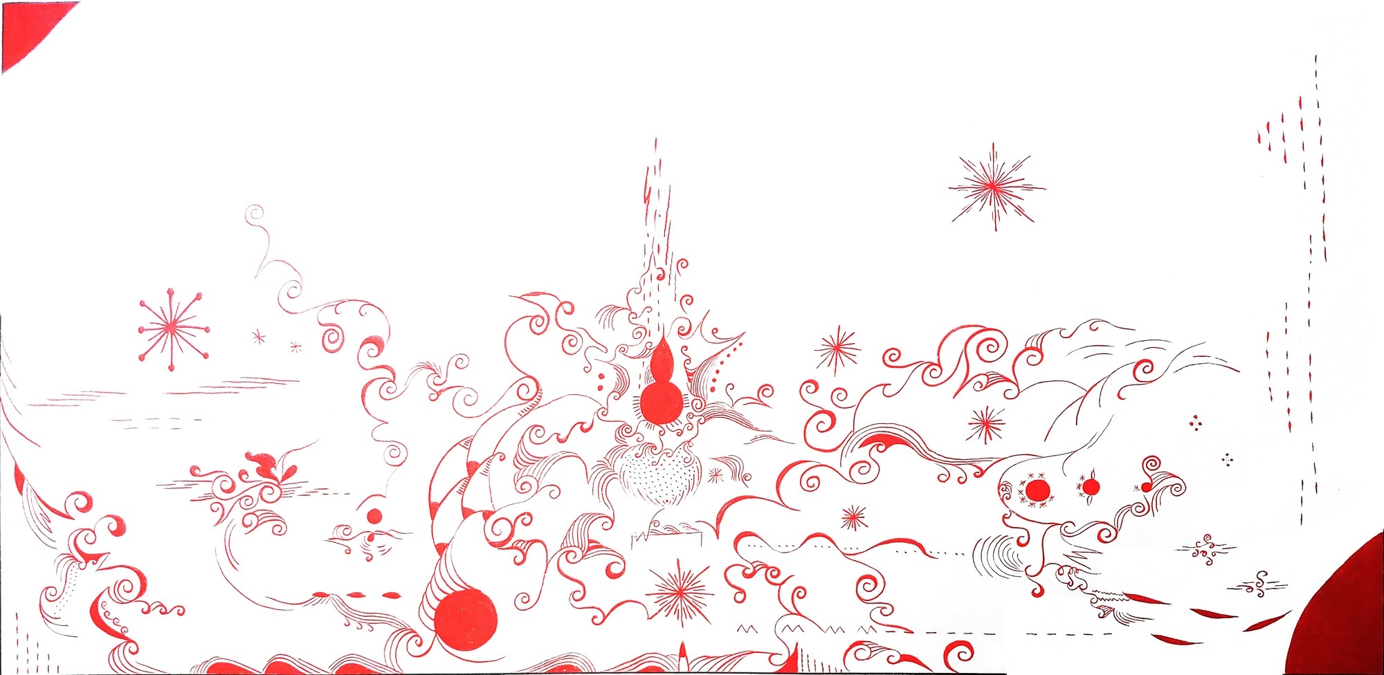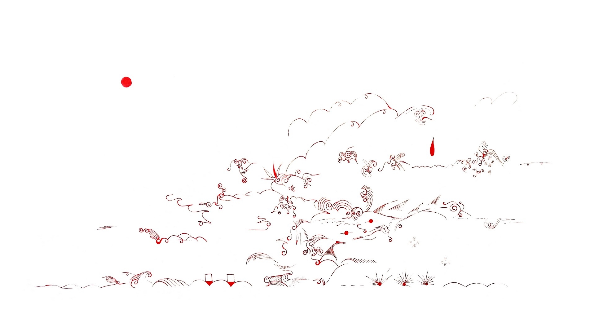 • 红底白墨