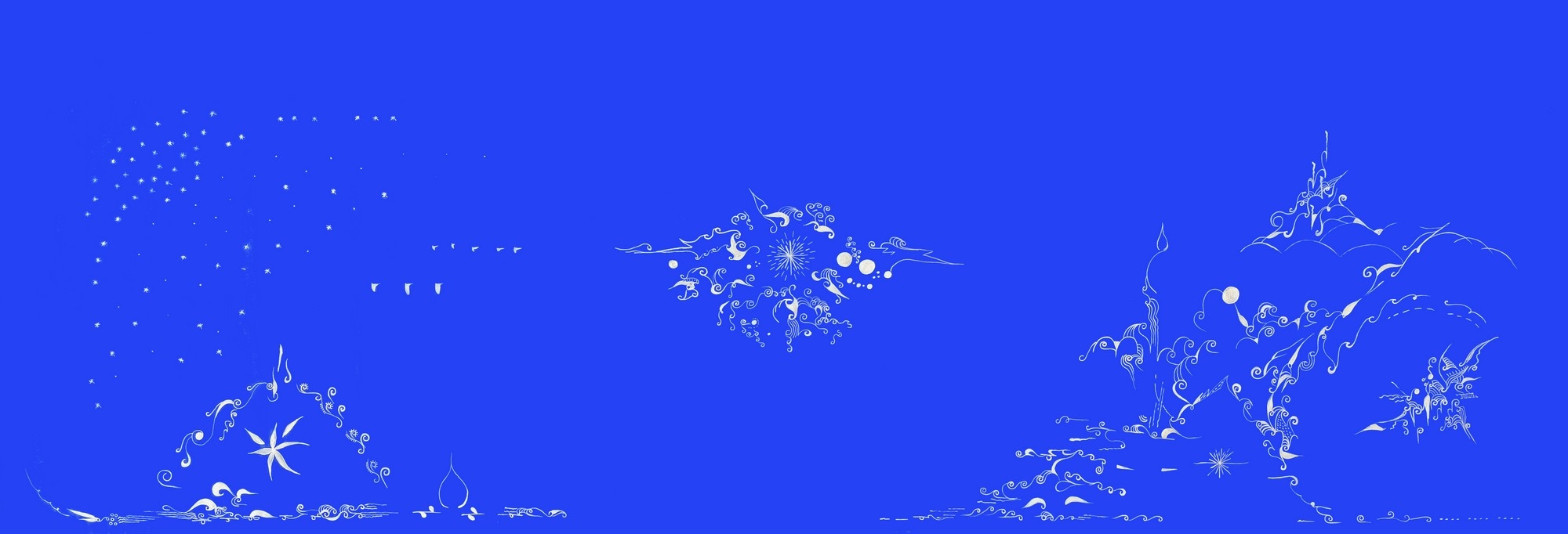 • 蓝底白墨
