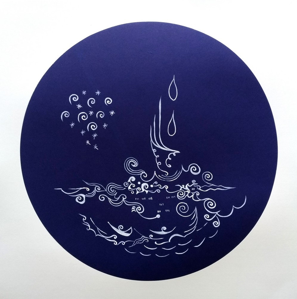蓝底白墨